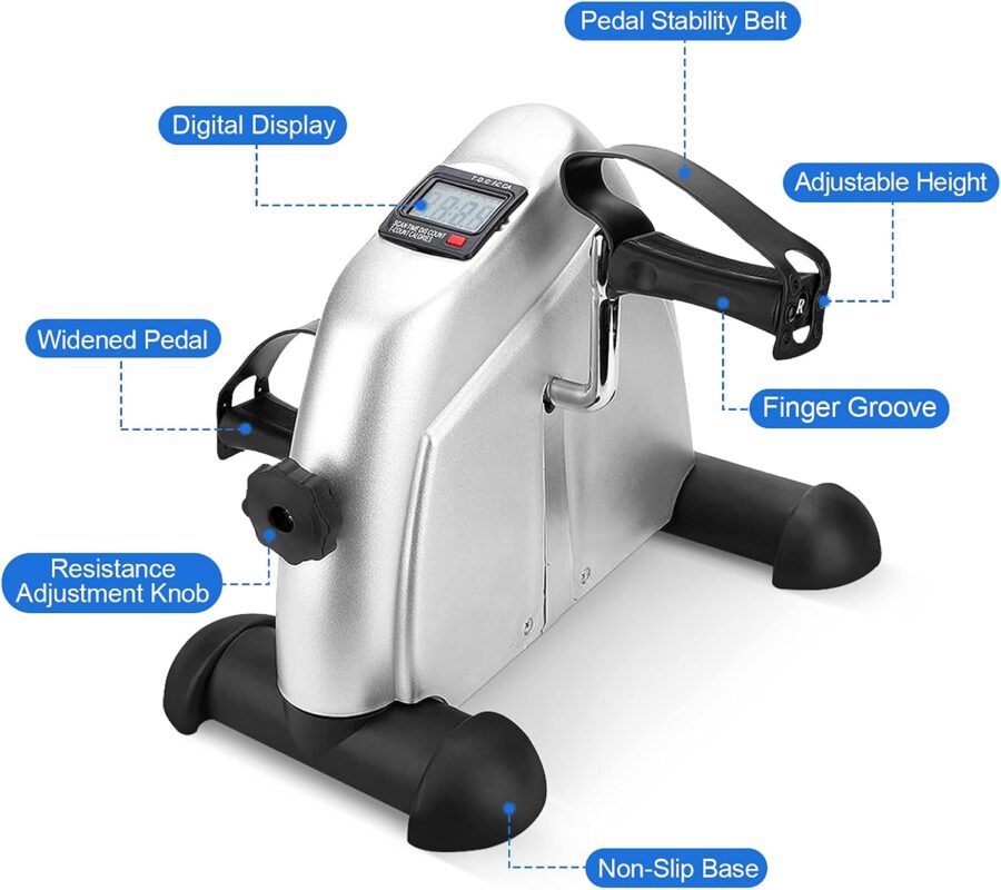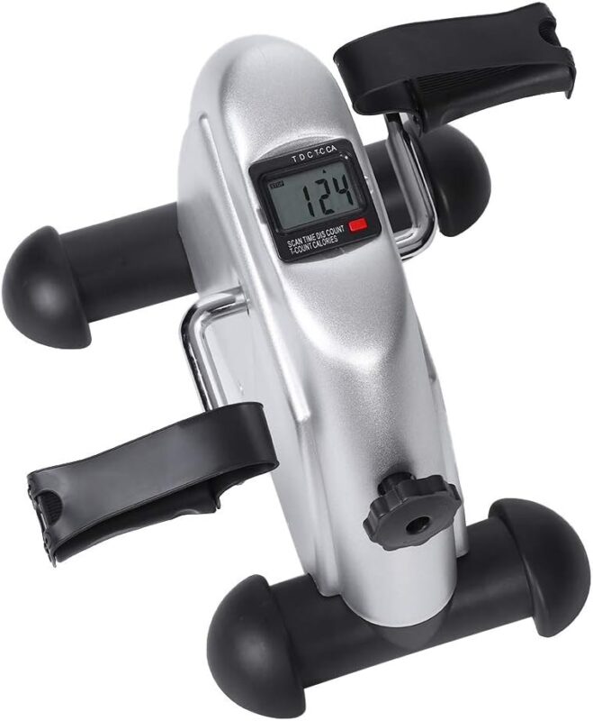 Entraîneur à Pédales, Mini Exercise Bike Léger et Portable Vélo Pédalier Appartement avec Ecran pour la Maison et Le Bureau Adapté aux Personnes Âgées, Gris